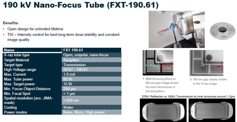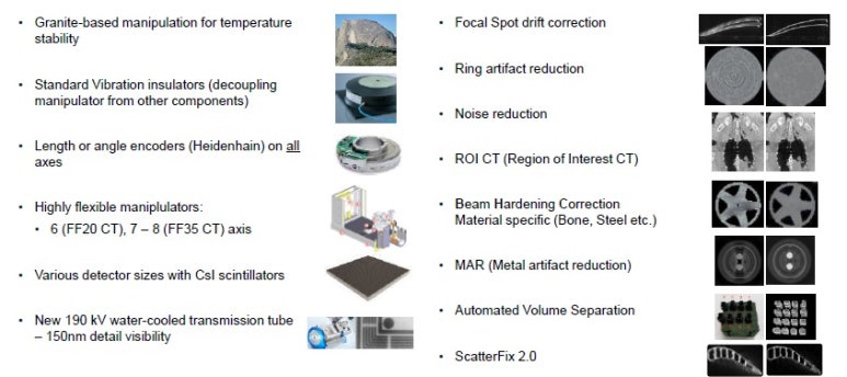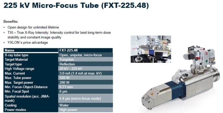 | ¡¤ Single Tube System ¡¤ 190kv Transmission tube ¡¤ 280 mm x 430 mm ¡¤ CT Volume ¡¤ Various Detectors ¡¤ Part weight 17kg ¡¤ 6 Axis System |